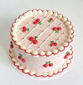Vintage Cake adalah kue ulang tahun dengan gaya klasik ala tahun 60–90-an yang identik dengan dekorasi buttercream tebal, warna pastel lembut, dan ornamen bergaya retro.