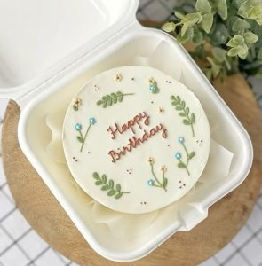 Kue ini populer karena tampilannya yang cute, modern, dan cocok untuk segala usia. Meski minimalis, Korean cake tetap terasa spesial karena memiliki detail yang rapi dan personal.